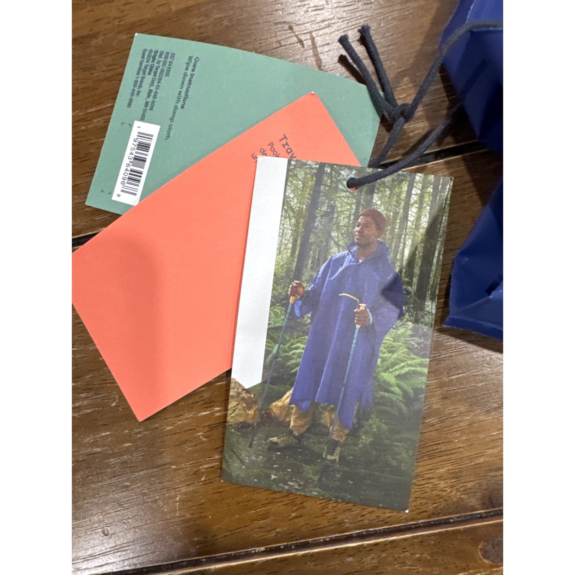 Reusable Blue Hooded Rain Poncho With Front Pocket By Embark One Size Fits Most Lightweight & Packable Design
