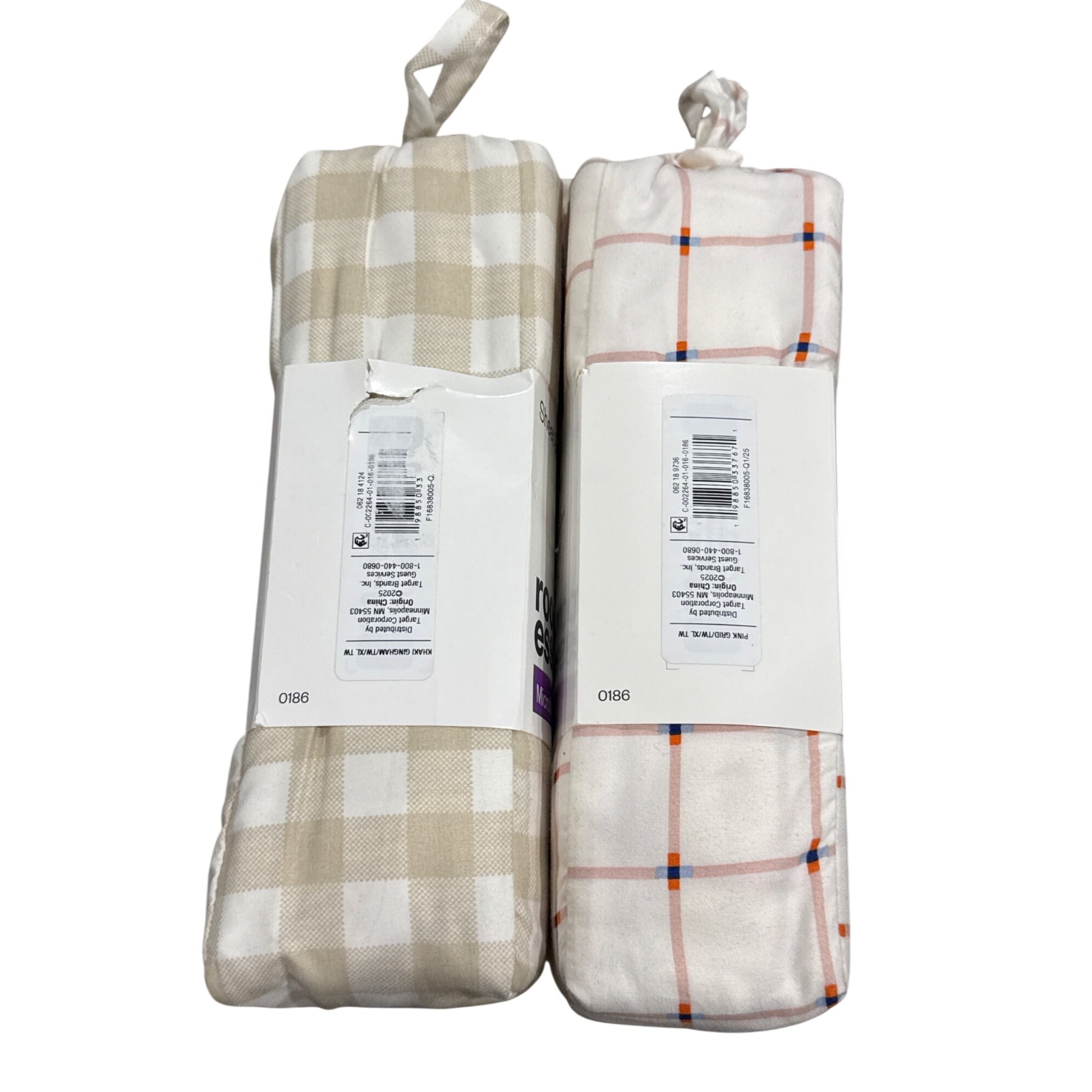 Room Essentials Twin XL Sheet Set Microfiber Beige Checkered & Pink Plaid Pattern Wrinkle Resistant